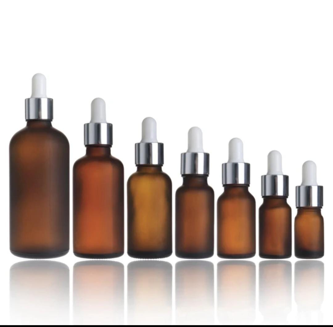 Flacon Compte-Goutte Marron Ambré En Verre De 10ml a 100ml Avec Bouchon Argenté-Blanc