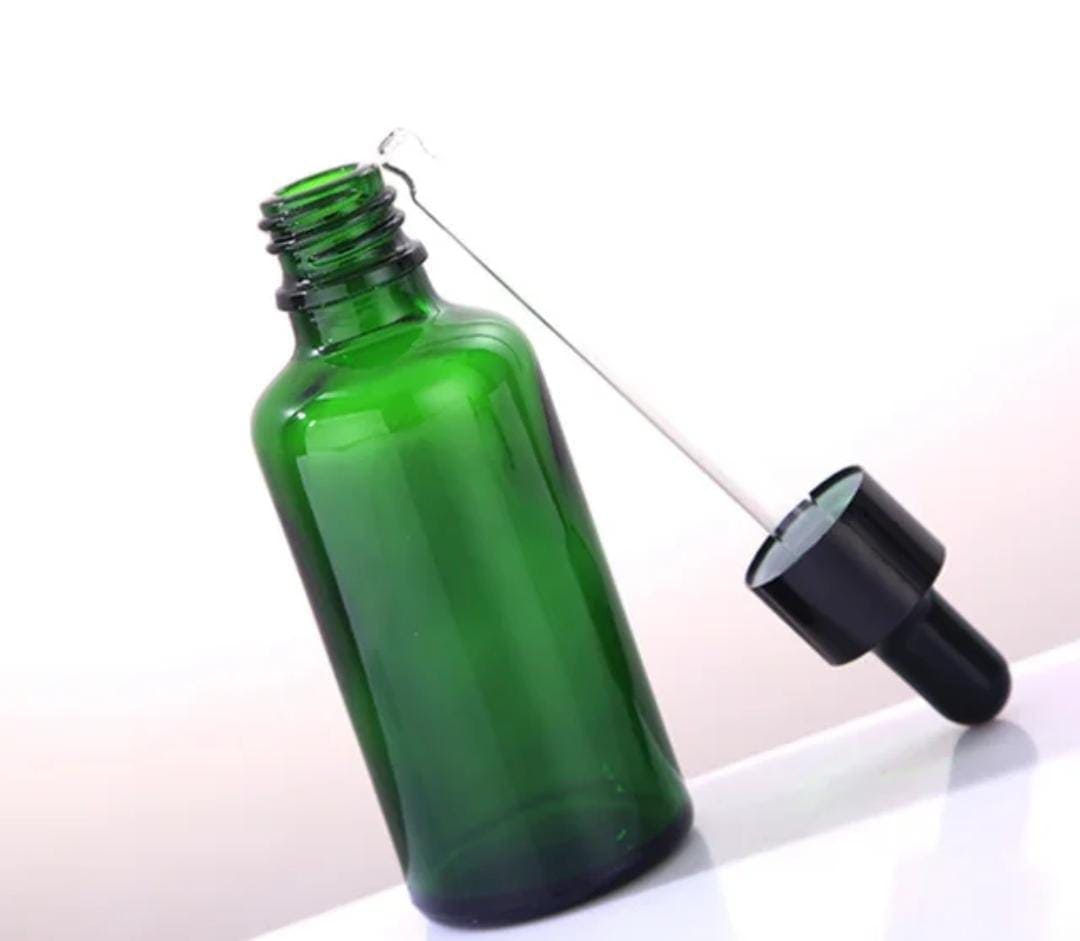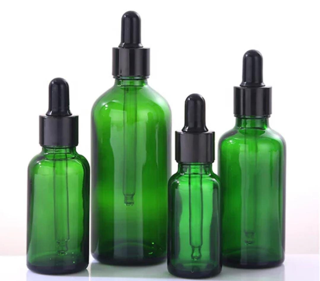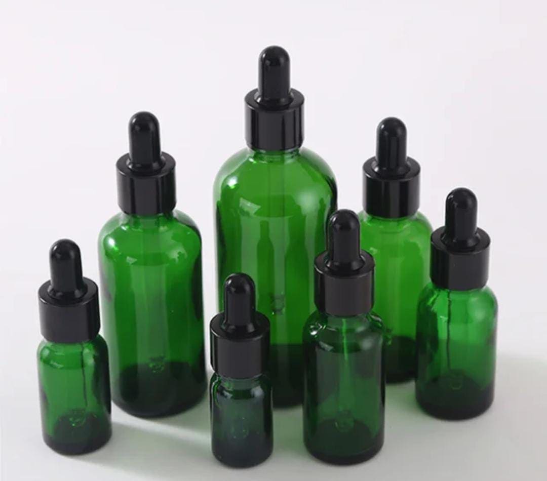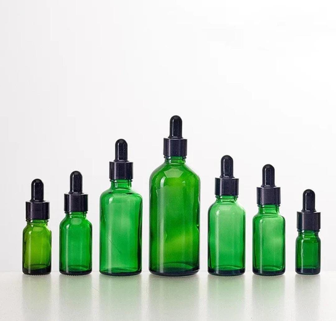Flacon Vert En Verre avec Compte-Goutte De 10ml a 100ml Avec Bouchon Noir
