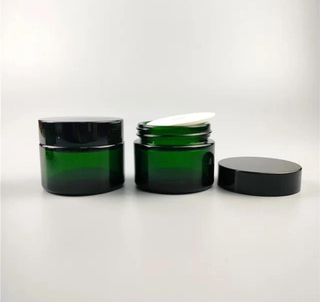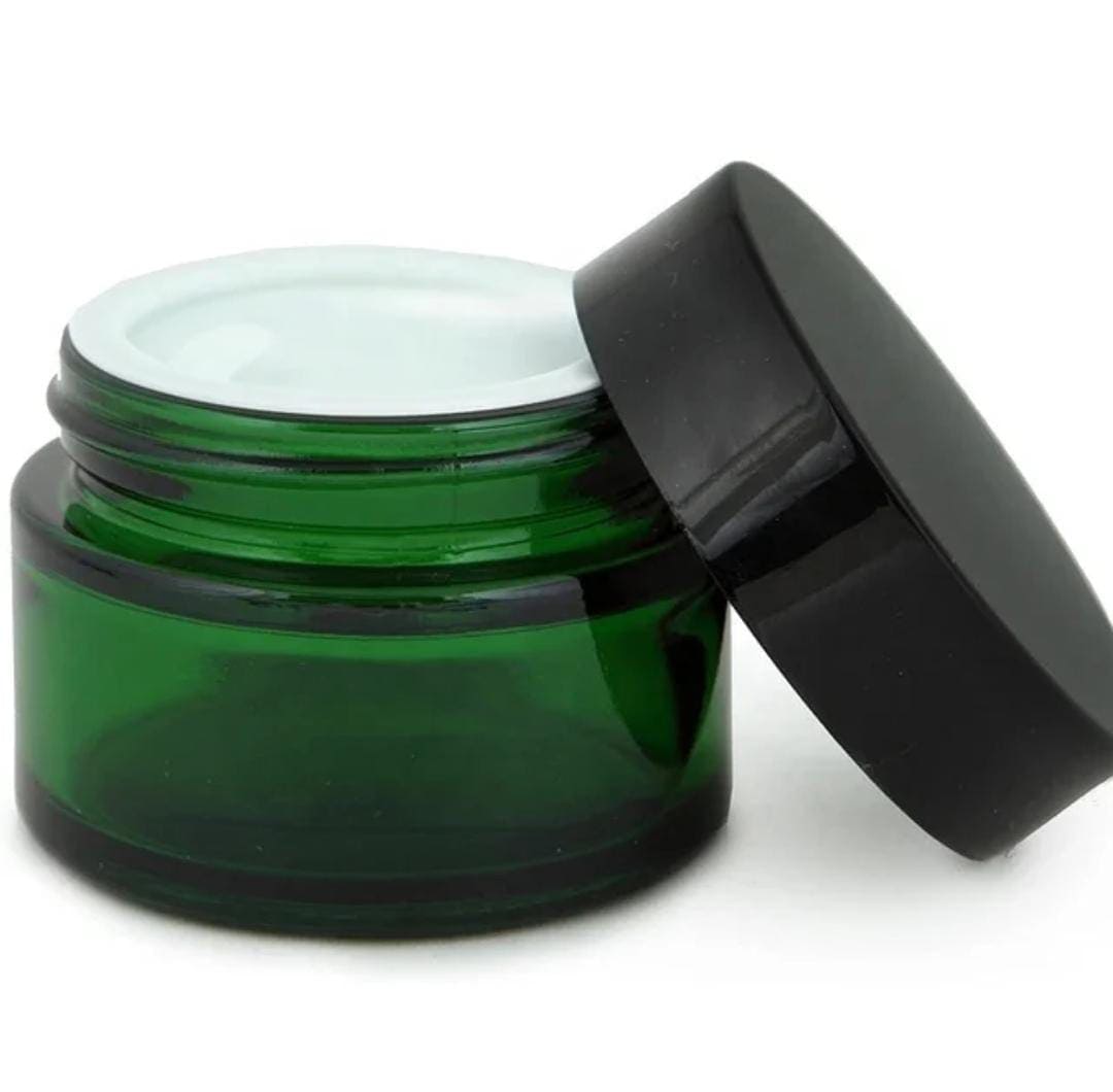 Pot Vert Cosmétique En Verre 50g Avec Couvercle Noir